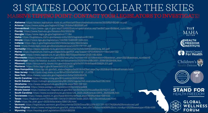 31 U.S. states have introduced legislation to ban or severely limit geoengineering and weather modification operations.